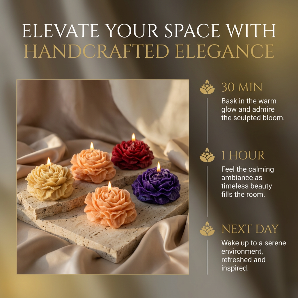 Available in multiple soft and rich color tones, the Peony Bloom Candle blends beautifully with modern, minimal, and romantic interiors. Whether you light it for a cozy evening or display it as an accent piece, it instantly elevates the mood of any space.