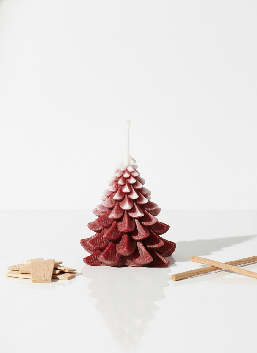 Handcrafted Christmas tree-shaped candle