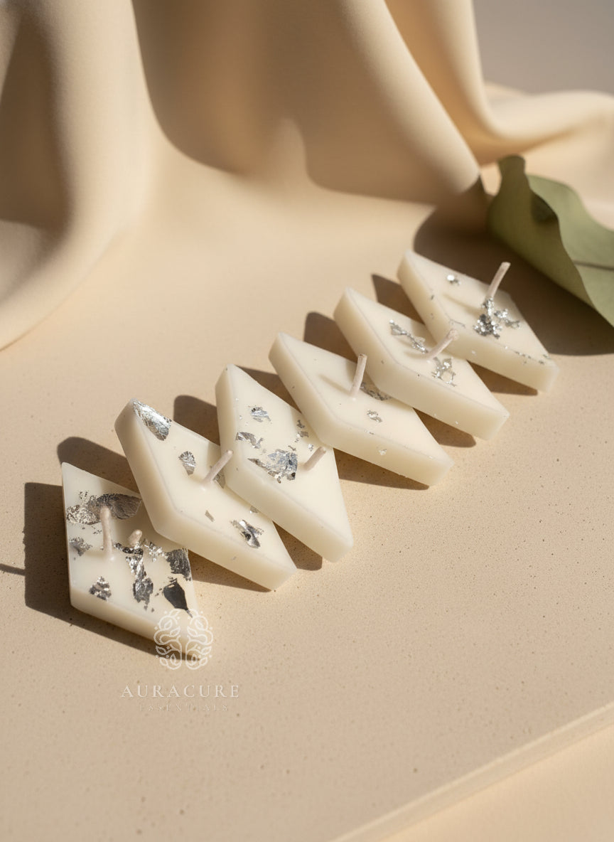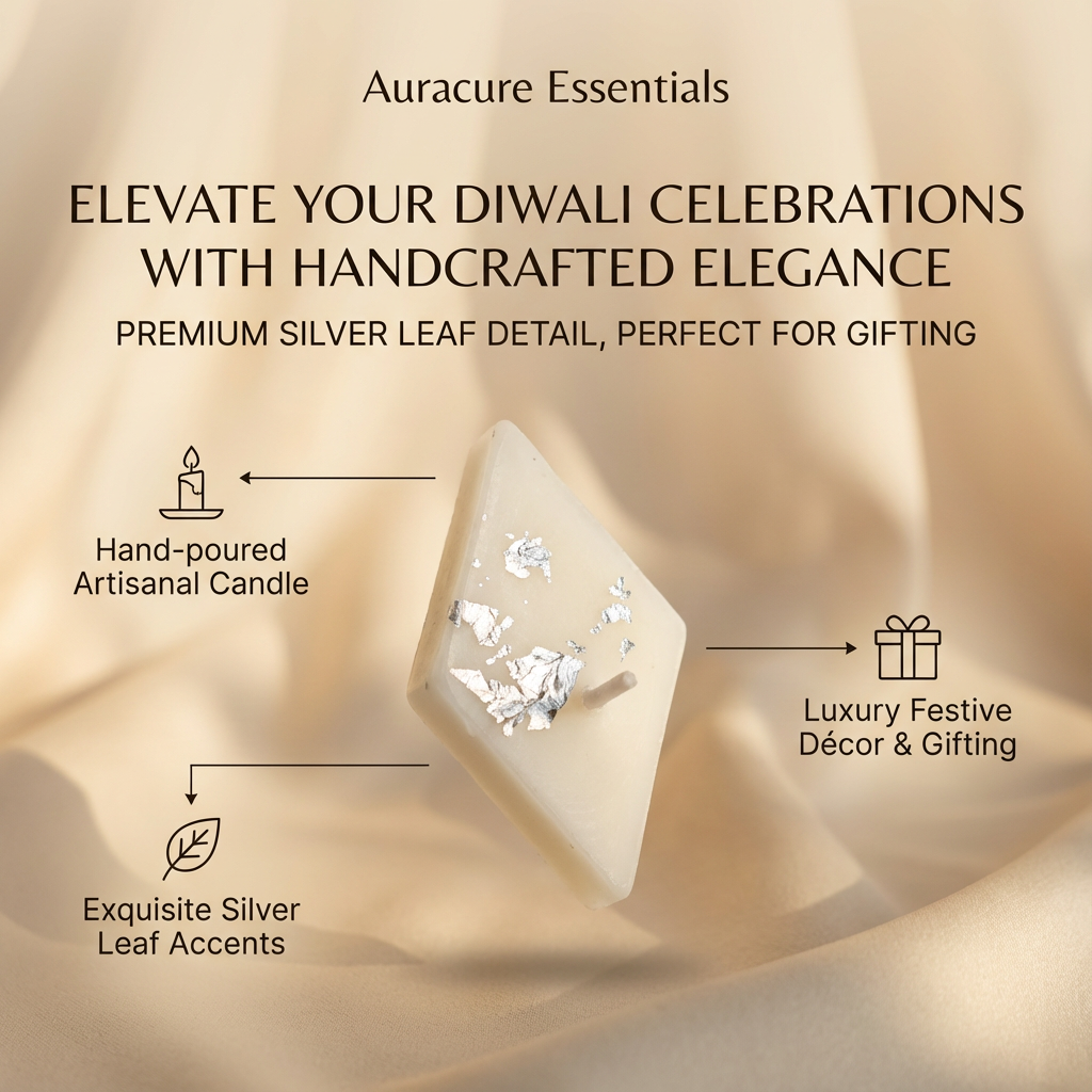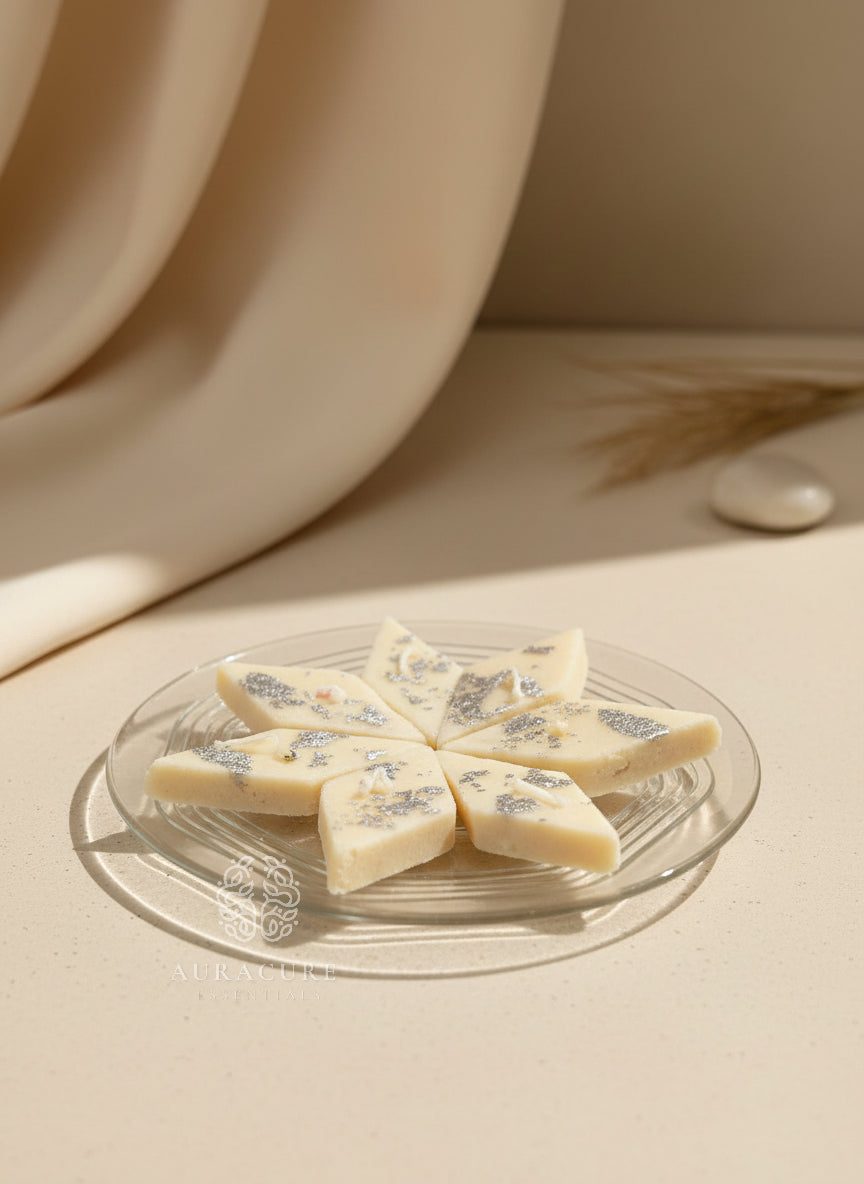 Inspired by the timeless Indian sweet, this Festive Kaju Katli Barfi Candle is crafted to look just like real kaju katli, complete with elegant silver leaf detailing. Hand-poured using premium wax, it brings a festive charm to your décor without being overpowering. Perfect for Diwali, weddings, return gifts, pooja setups, or festive hampers, this candle adds a traditional yet luxurious touch to any celebration. Use it as a décor accent or light it gently to create a warm, inviting glow. A thoughtful gifting option that blends nostalgia, culture, and modern aesthetics beautifully.