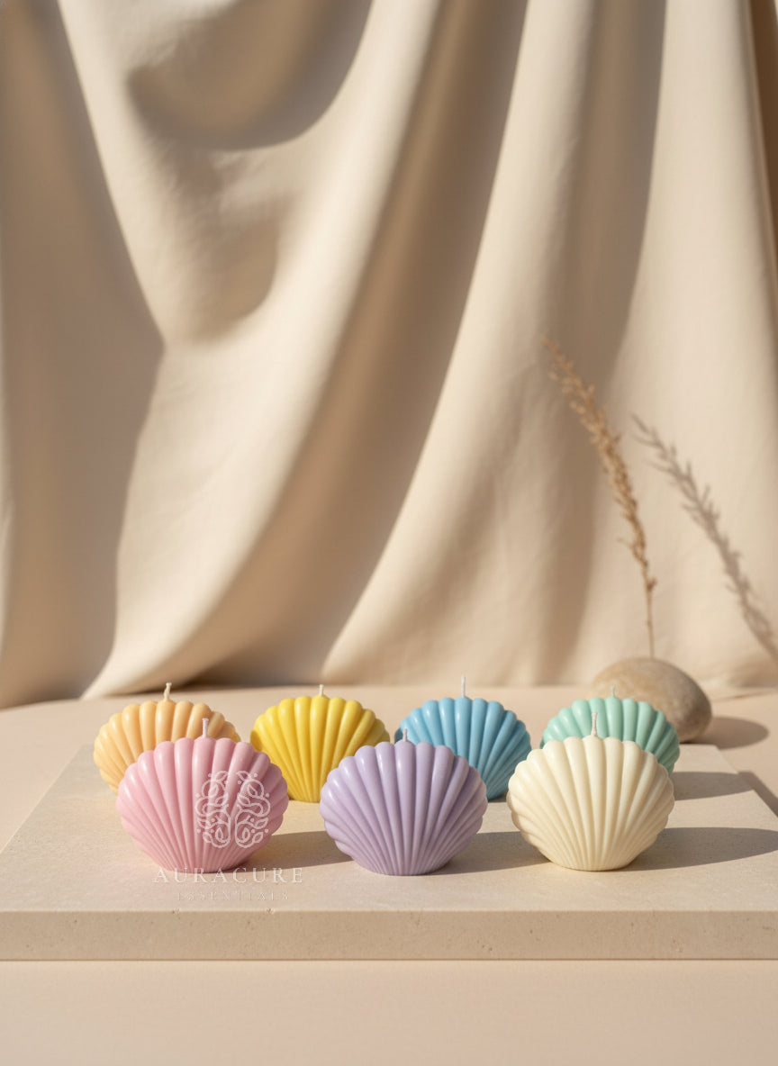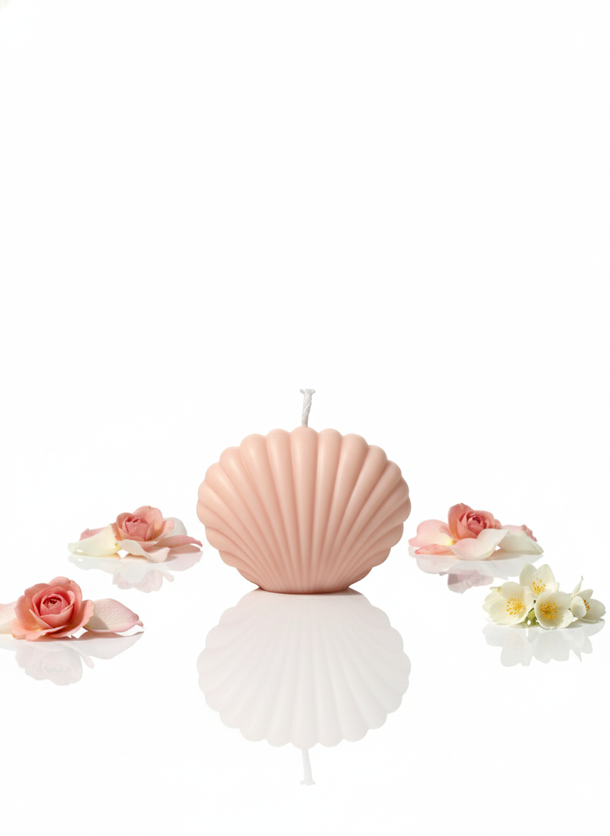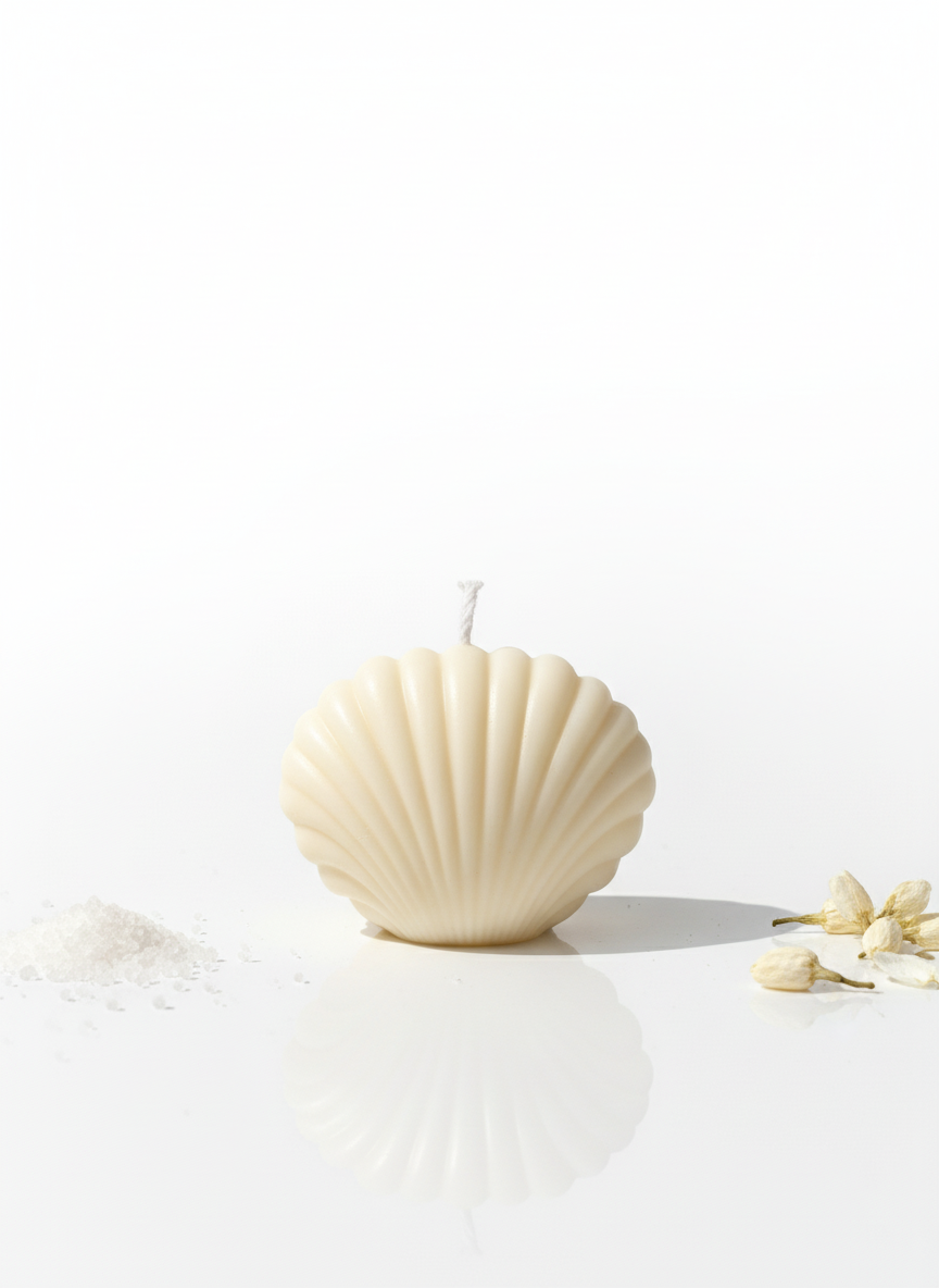 Hand-poured seashell-shaped candle with fine detailing